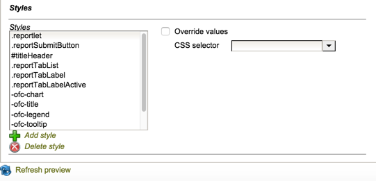 In theStylessection of the window, you canchange the CSS definitionsof the current bundle's predefined styles, and also add your own definitions: