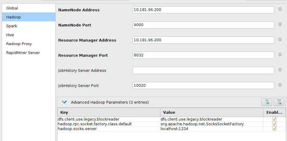 为SOCKS和SSH配置RapidMiner Radoop高级设置